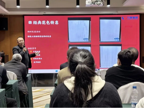 针对本次会议专属的渠道合作政策、促销支持方案,西安仕亚木业有限公司加盟中心销售经理张莹先生,进行全面宣讲,以极具诚意的政策红利、切实可行的落地举措及清晰透明的合作路径,为在场渠道伙伴搭建起高效共赢的合作桥梁,进一步激发了大家的合作热情与市场开拓动力。